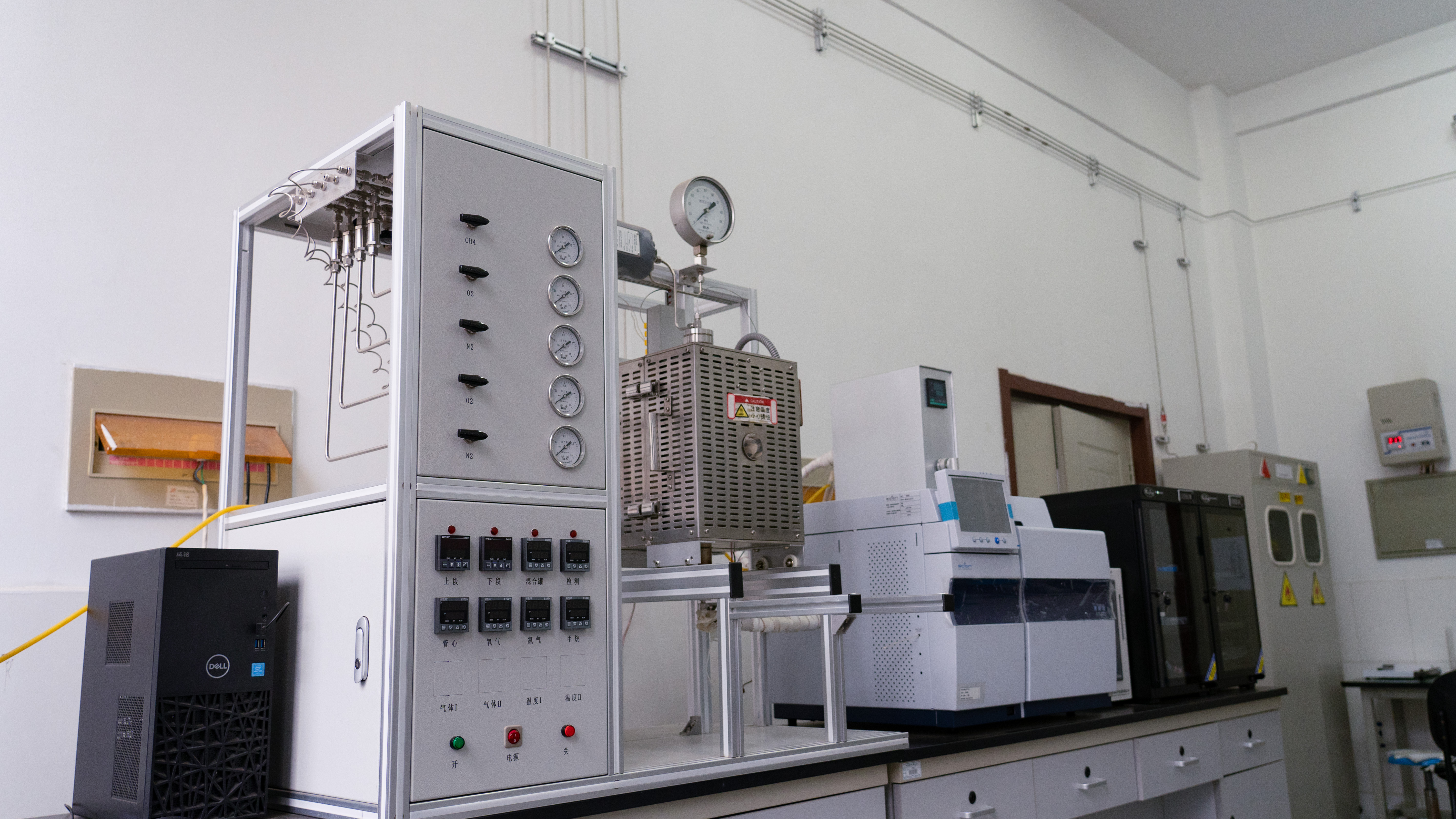 2. 汽化系统:温度:≤500 ℃,开式加热炉加热,配程序控温;压力:5 MPa;材质:316 L;结构:底部为盘管预热器,顶部为气体混合器。