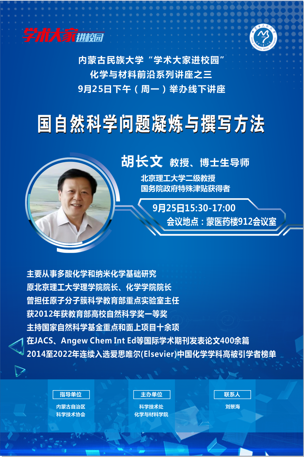 内蒙古民族大学“学术大家进校园”化学与材料前沿系列讲座之三