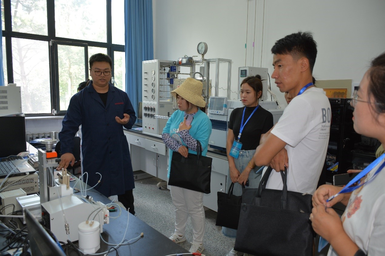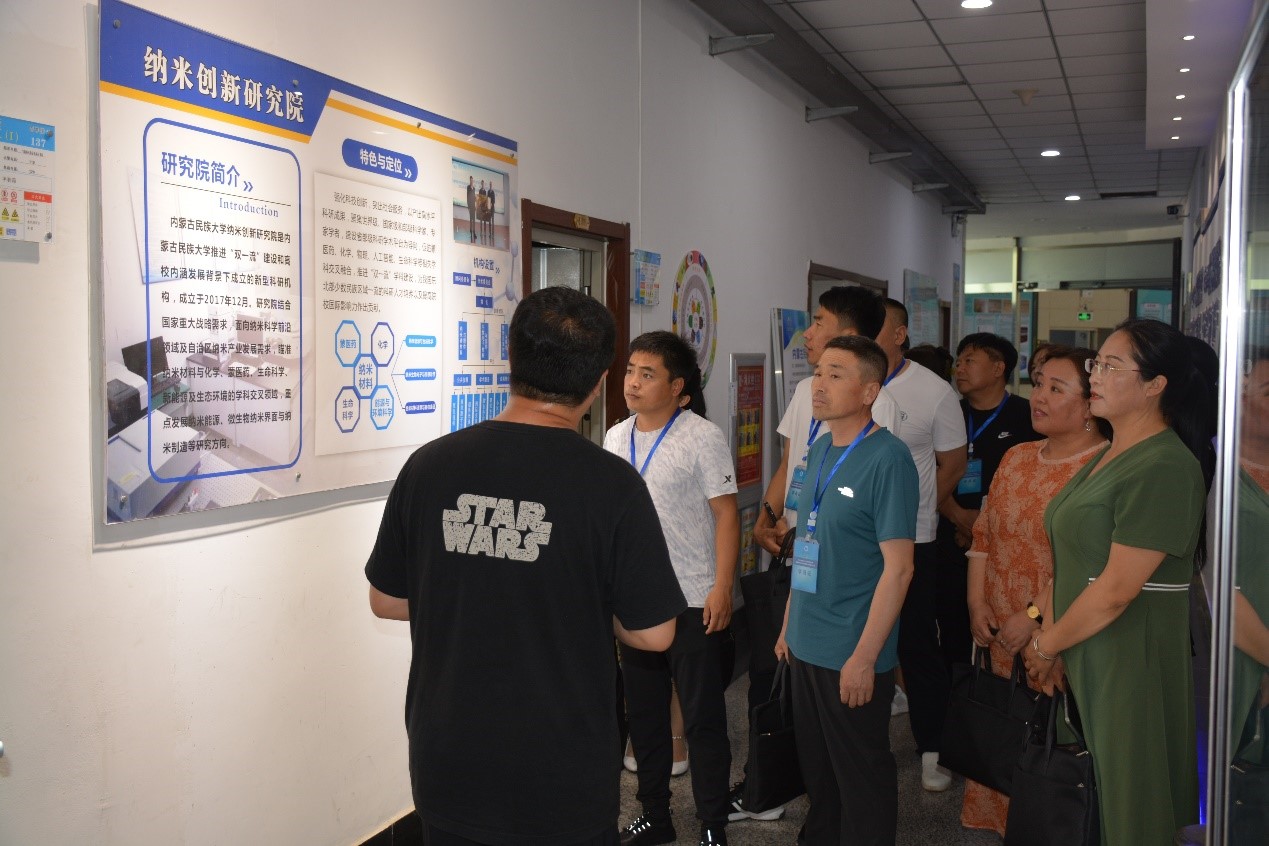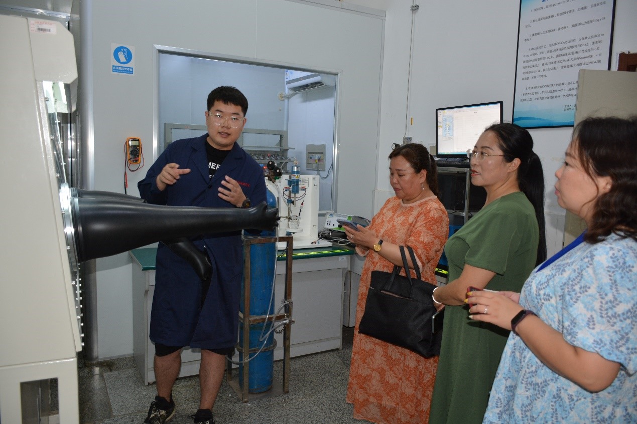 7月12日下午,通辽与兴安盟各校近120名中学化学教师到纳米创新研究院进行学习参观。王寅老师向各位老师介绍了纳米创新研究院研究院、内蒙古自治区纳米碳材料重点实验室、锂硫电池储能内蒙古自治区工程研究中心的具体情况,包括学术方向、学术委员会、研究团队与科研成果,并向大家科普了碳达峰碳中和的相关知识和纳米技术在碳中和领域的应用。研究生丁钦、李晓宇、陈福荣、陈志冉、刘洋、李青光、梁华忠、贾铭勋、董羽等详细讲解了手套箱、软包电池、旋转环盘电极,电化学工作站、静电纺丝机、原位原子力显微镜、光电催化转化装置、半导体分析测试仪等科研仪器的基本原理与应用领域。