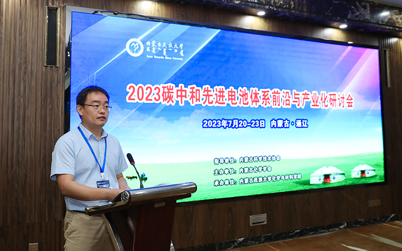 7月21日,由内蒙古科学技术协会指导,内蒙古化学学会主办,内蒙古民族大学化学与材料学院承办的2023碳中和先进电池体系前沿与产业化研讨会在通辽市成功召开。校党委委员、副校长、统战部部长王百涛出席会议并致辞。会议邀请了清华大学张跃钢教授,国家杰青、上海交通大学杨晓伟教授,我校化学国家级实验示范中心主任段莉梅教授等国内外知名学者,盟维科技等高新技术企业的CEO及技术负责人,以及专家学者、青年学生代表60余人参加本次学术会议。研讨会开幕式由我校化学与材料学院院长刘景海教授主持。